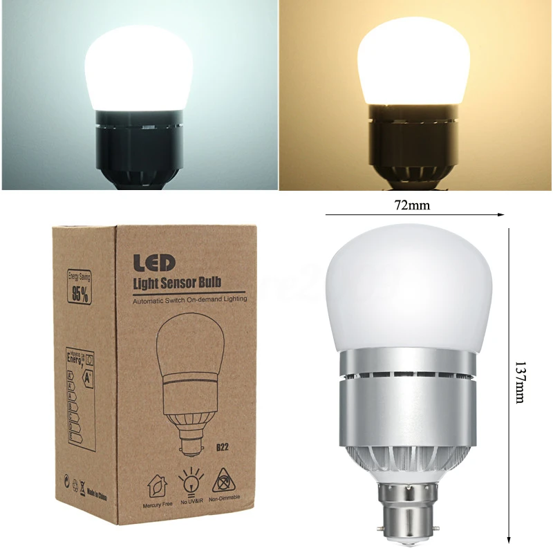 IKVVT 12W AC 85-265V E27/B22 Dusk to Dawn LED Lamp Bulb Sensor Energy Saver Auto Light
